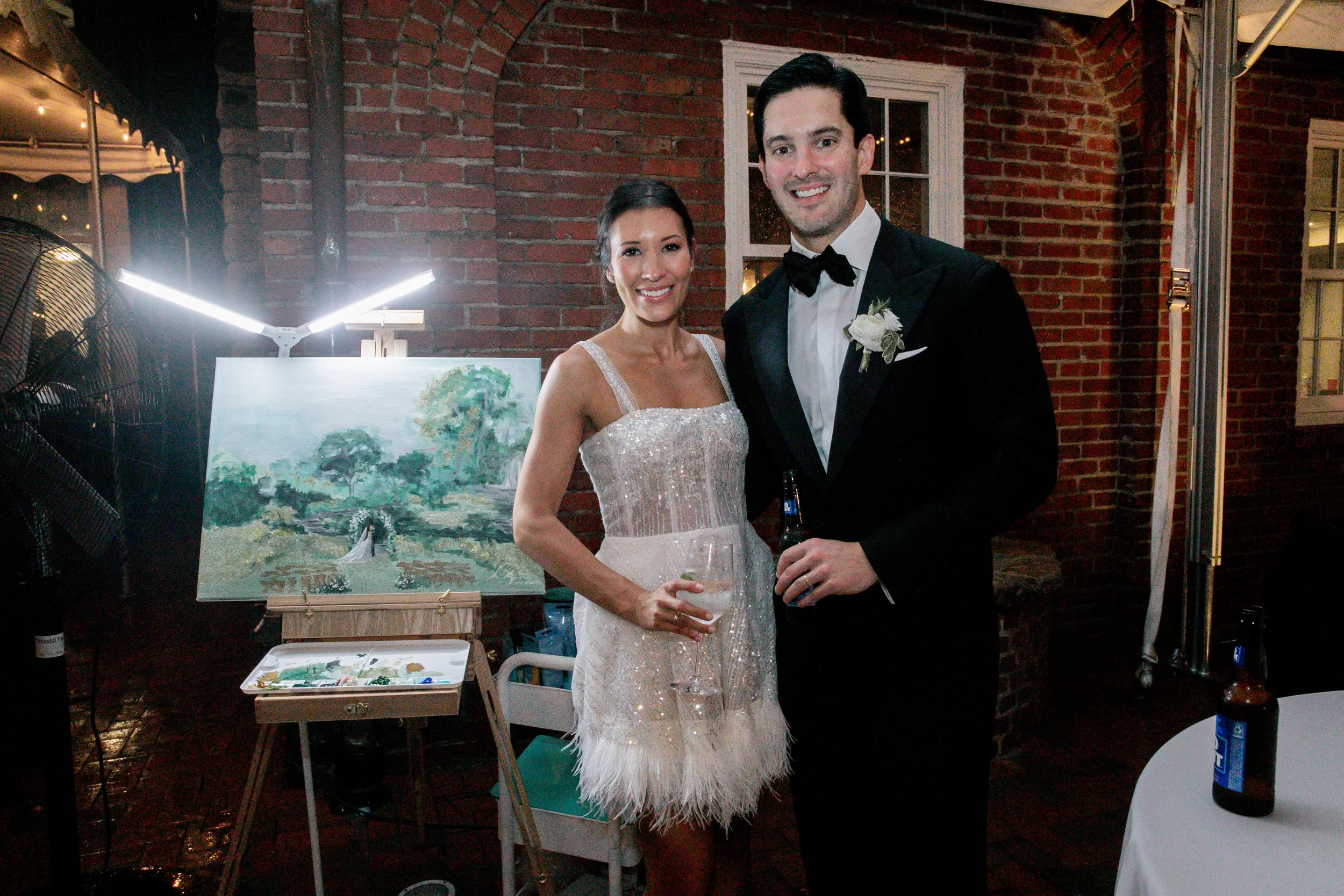 During our planning call, the couple decided that they wanted the painting to capture the beautiful scenery at Cheekwood with small, special reminders of their wedding sprinkled in.
