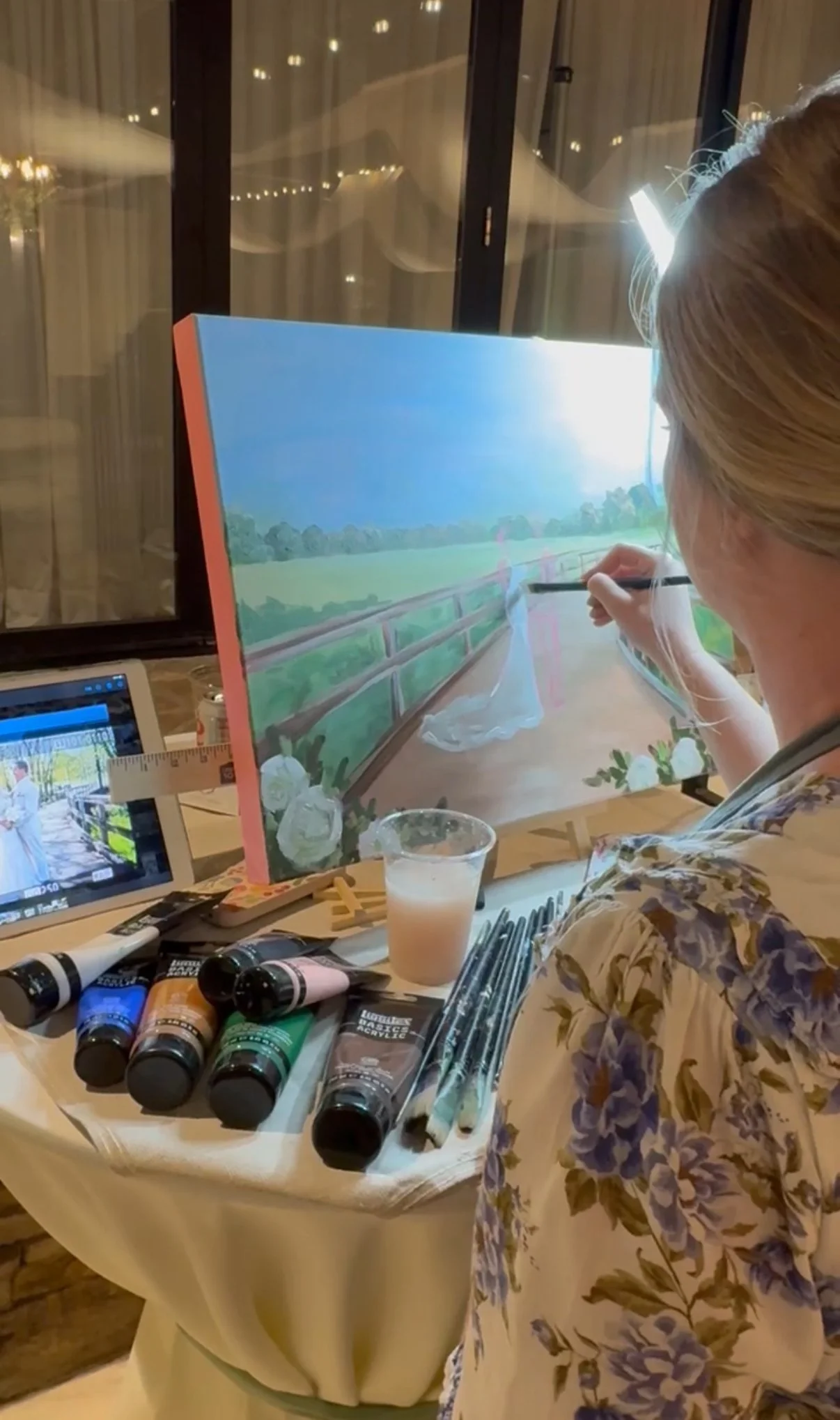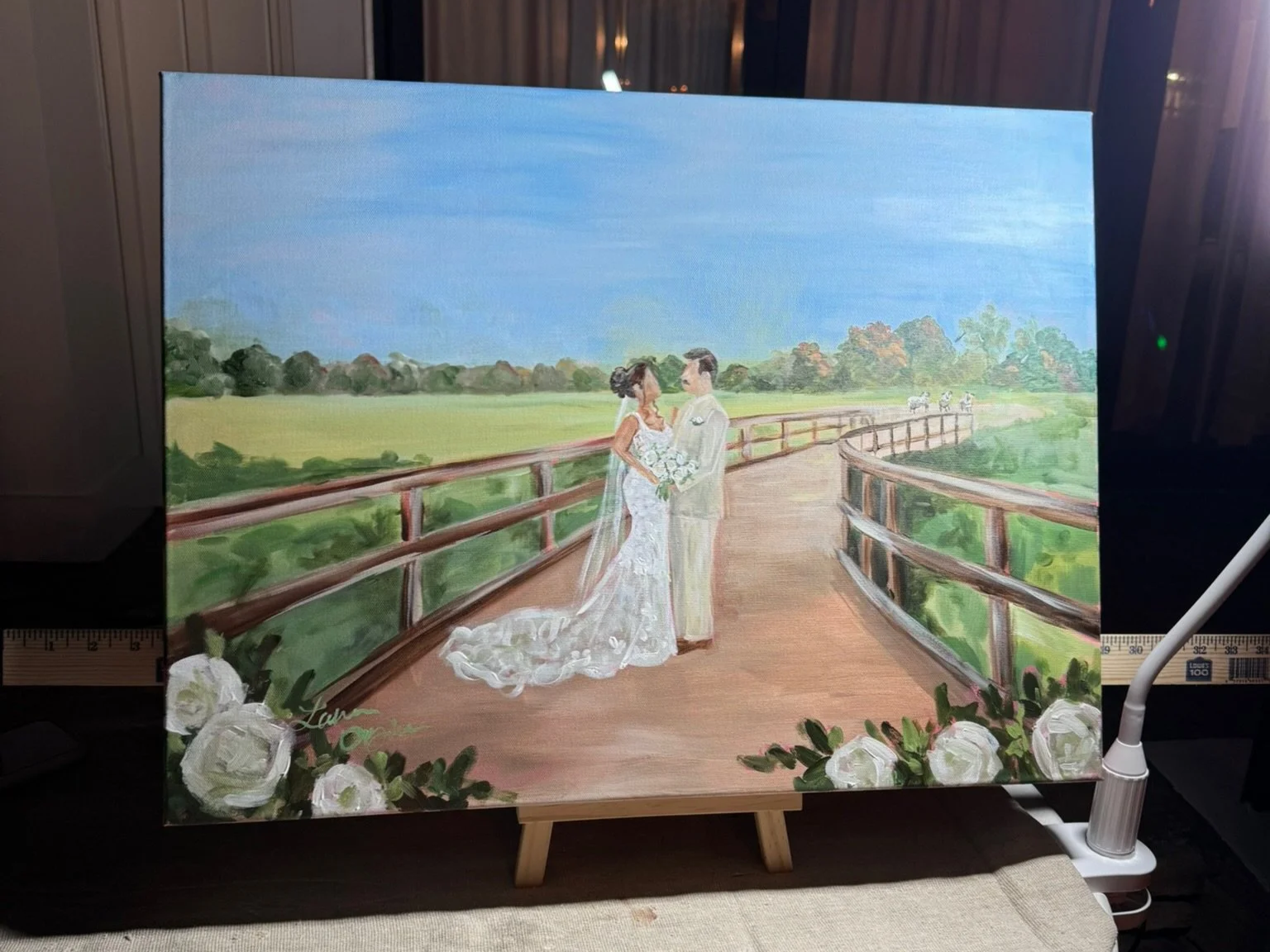 A first look painting is one of the most emotional moments to capture live — especially at Hermitage Golf Course, where the sweeping greens and golden light create a naturally romantic backdrop. As a Nashville live wedding painter, I transform that once-in-a-lifetime moment into a fine art heirloom the couple takes home the very same night. It’s both a guest experience and a keepsake, perfect for brides (and mothers-of-the-bride) who want a meaningful, elegant detail that feels truly personal and unforgettable.